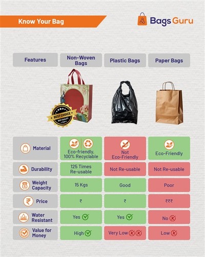 Made from high-quality non-woven fabric with lamination for added durability. Tear-resistant, lightweight, and suitable for repeated use.